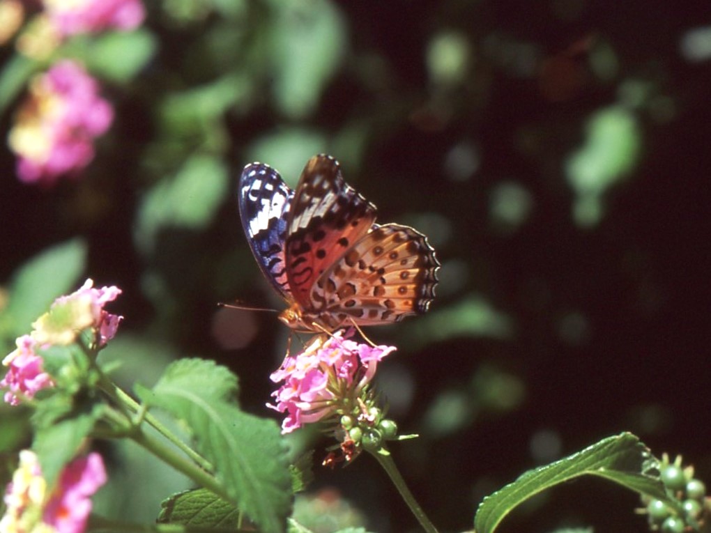 庭に生えているスミレやパンジーを食草にしているツマグロヒョウモンとクスノキを食草にしているアオスジアゲハ。両種ともランタナのハンナが大好きです。